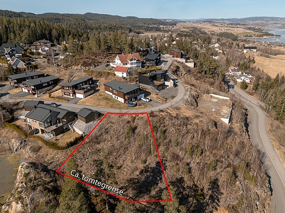 Tomten ligger i et skrånende og solrikt terreng med adkomst via privat vei. I dag fremstår den som en naturtomt med enkelte trær, noe som gir et flott utgangspunkt for å skape et grønt og lunt utemiljø. Fra tomten er det en nydelig utsikt. Vann og avløp er allerede ført frem til eiendommen, noe som forenkler byggeprosessen. Med et tomteareal på 1 001,8 m² har du rikelig med plass til å realisere en trivelig og romslig familiebolig med god boltreplass både inne og ute.