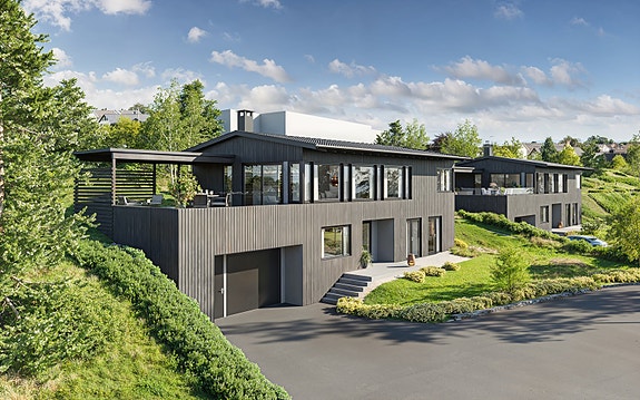 Boligen går over to plan og har fasiliteter som bla. garasje og solrike uterom. Utarbeidede arkitekttegninger fra RAM Arkitekter er inkludert i prisen.