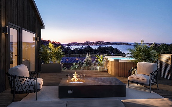 Med utsikt halvvegs til Danmark og "Blindleia" Kristiansand til Mandal, har du et skue gjennom alle årstidenes særpreg som er få forunt. Med et praktfullt utsyn hvor man alltid kan hvile øynene på havets uendelighet og værets skiftninger.