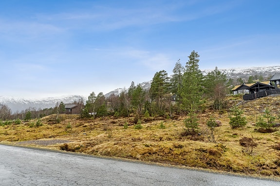 Skrående stor sørvendt fritidstomt med naturlig vegetasjon. Tomten ligger fint til og har gode solforhold.