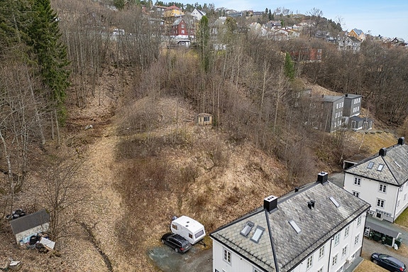 Skrånet boligtomt med tidligere godkjent søknad for tomannsbolig! Søknaden ble sist godkjent i 2019 og har således utgått, men rammene ligger til rette for å få samme omfang godkjent også i dag for den riktige utvikler.
