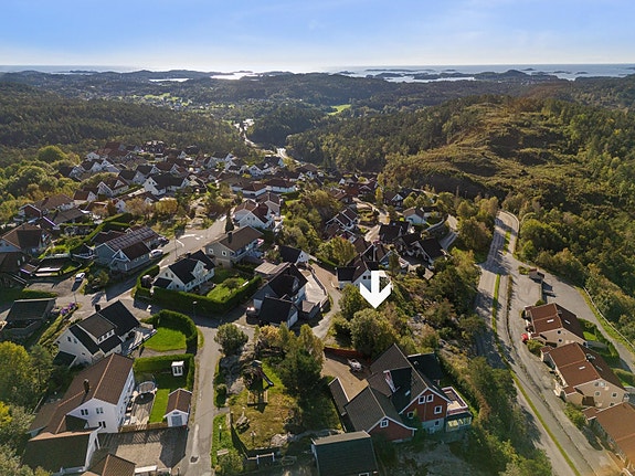 Tomten ligger i et etablert boligområde bygget ut med stort sett eneboliger. Lekeplass like ved eiendommen.