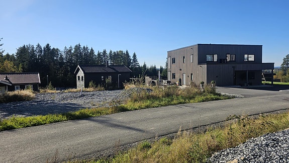 Tomten er i et etablert boligstrøk og det er asfaltert bilvei frem til tomten.