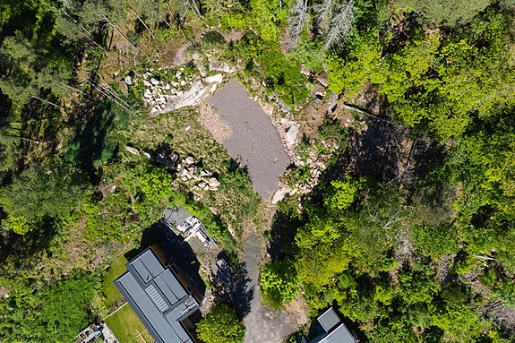 Relativt flat tomt med noe naturlig vegetasjon/berg.