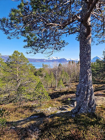 Området har mye lyng og furu, flott utsikt og god solgang, noe som var viktig for oss da vi kjøpte tomten. Vi endte opp med to tomter på halvøya, og har bestemt oss for å selge den ene av disse.