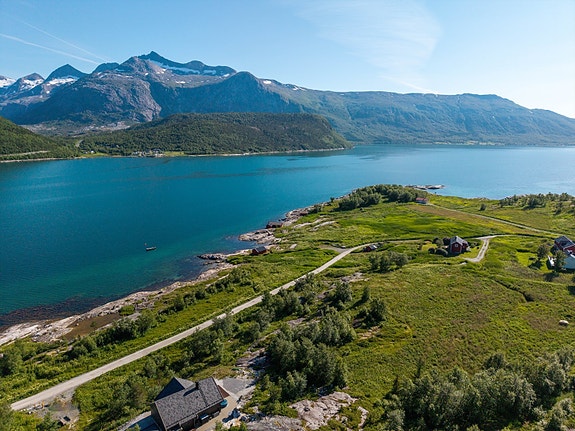 Tomten ligger på enden i et felt regulert for til sammen 3 fritidsboliger. Tilhørende nausttomt i umiddelbar nærhet. Tomten byr på en rolig atmosfære med fantastisk utsikt i alle retninger, men spesielt utover havet og de majestetiske Børvasstindene.