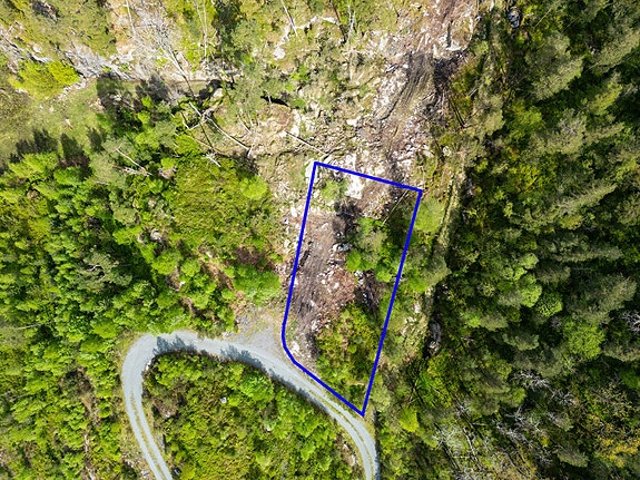 Lett skrående tomt. Selger opplyser at vann, avløp, strøm og fiberrør er lagt til tomtegrensen.