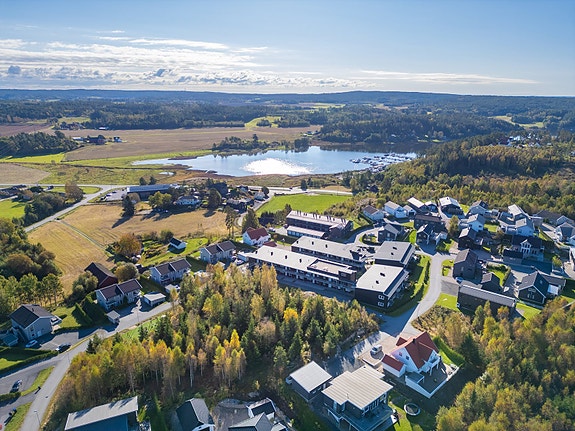 Dette er et ganske nytt nabolag. For ti år siden var det bare skog her. Nå er det flate området dekket av pene rekkehus og eneboliger som hviler med grønne hager langs ryddige asfalterte veier. Området omkranses av skog og åkre - og kan nesten minne om en liten landsby. Du merker at du befinner deg ved kysten. Nærheten til Elingaardkilen røpes av fjerne måkeskrik, sporadisk båtdur og en svak duft av saltvann. Ned dit er det en spasertur på 400 meter. Kanskje du skaffer deg båtplass helt innerst.