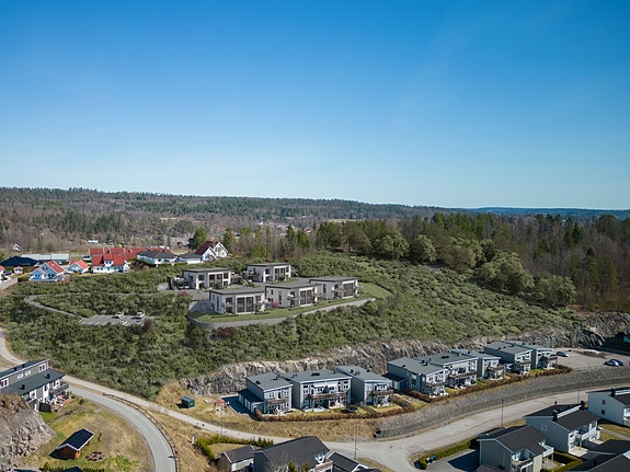 Området byr på et vennlig nabolag omgitt av vakker natur, turstier og grønne omgivelser som inviterer til et aktivt og harmonisk liv. Tomten har en vestvendt beliggenhet med svært gode solforhold, noe som gir lange, lyse og varme dager fra tidlig vår til sen høst. I tillegg har tomten en flott utsikt som skaper en behagelig atmosfære og et ekstra kvalitetsløft i hverdagen.