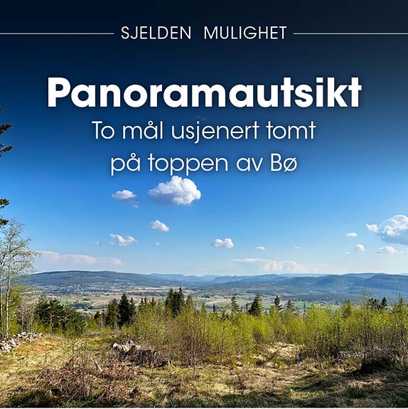 Her har du utsikt over store deler av Bø, mot Norsjø og videre mot Nome. Tomten har gode solforhold og et landskap som endrer vakkert karakter gjennom årstidene. ( se bilder).