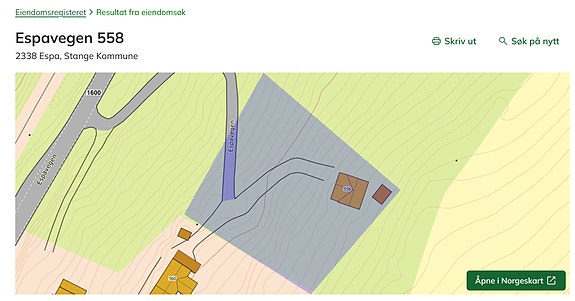 To stk selveier bolig/hyttetomter (179/76 og 179/77) i skrående terreng vestvendt mot Mjøsa. Noe som er påbegynt hugget og noe som kan hugges. På Espavegen 558(179/76) ligger det en hytte på ca 40m2, denne trenger ferdigstillelse/restaurering(er borehull for vann). Begge tomtene har enkel tilgang på strøm. det er langt til nærmeste kommunale kloakk anlegg, så her må tett tank/renseanlegg benyttes.