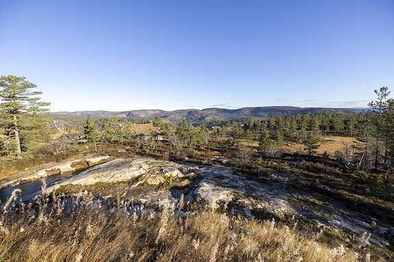 Fra tomten har du vidstrakt utsikt mot fjell og daler, og flere steder ser du glimt av vann i landskapet. Beliggenheten gir gode solforhold gjennom dagen, og den åpne naturen rundt gir en følelse av rom og frihet. Vei, vann og strøm er tilrettelagt i området, og det er enkel adkomst via godt opparbeidede veier.