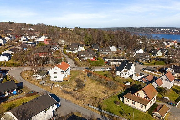 Tomten har en fin og luftig beliggenhet i et etablert boligområde, omkranset av småhusbebyggelse, grønne omgivelser og gode solforhold. Beliggenheten oppleves som rolig med lite trafikk i området, noe som gjør dette spesielt attraktivt for barnefamilier. Området har nærhet til både byliv, sjø og natur - en kombinasjon som gjør dette til et svært attraktivt sted å bo.