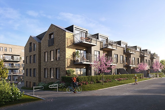 I de tre byggene finner du et utvalg av leiligheter i forskjellige størrelser, fra praktiske 25 kvm for aleneboeren til romslige 132 kvm med opptil tre soverom og god plass til familien. Alle byggene har elegant utformede inngangspartier. Bygg 1 og 2 strekker seg over fire etasjer med en tilbaketrukket femte etasje. Bygg 3 består av tre etasjer, med noen særegne toppleiligheter. De har dobbelt saltak, noe som åpner rommet og gjør det romslig og luftig. Store vindusflater sørger for gode lysforhold og at du får utsikten inn i stuen.