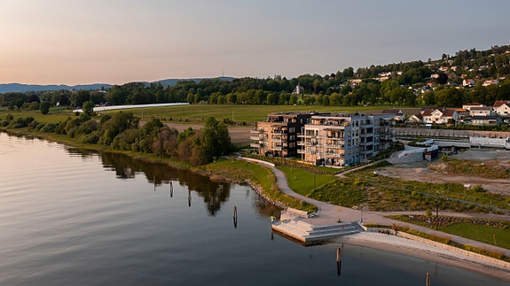 Store boligprosjekter tar tid. Først etter 13 år med planlegging kunne endelig Peab Eiendomsutvikling og PBBL lansere det første salgstrinnet av Osebakken Park i april 2021. Det besto av to bygg med til sammen 26 boliger. En god respons i markedet gjorde at vi la ytterlige ett bygg ut for salg på høsten i 2021, samtidig som det ble gitt grønt lys for byggestart. I dag, nesten fire år senere, har det velkjente næringsområdet, tidligere kjent som Pappen, blitt forvandlet til 46 nye hjem. Prosjektet har en unik beliggenhet. Det ligger vestvendt og solrikt til rett ved Porsgrunnselva. Siden tomta skråner ned mot vannet, så har de fleste boligene utsikt til elva.