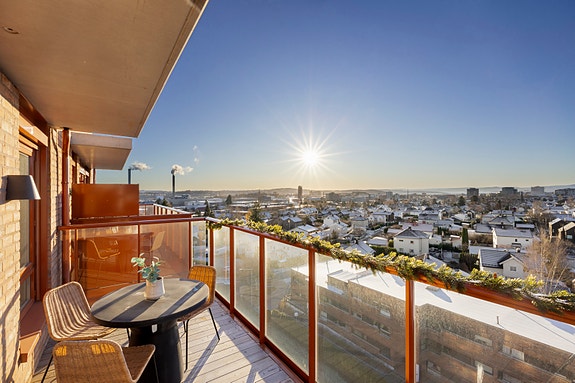 Velkommen til Vollebekk torgkvartal! Her kan du få flott utsikt og masse sol på din egen vestvendte balkong. Foto er fra leilighet 8044