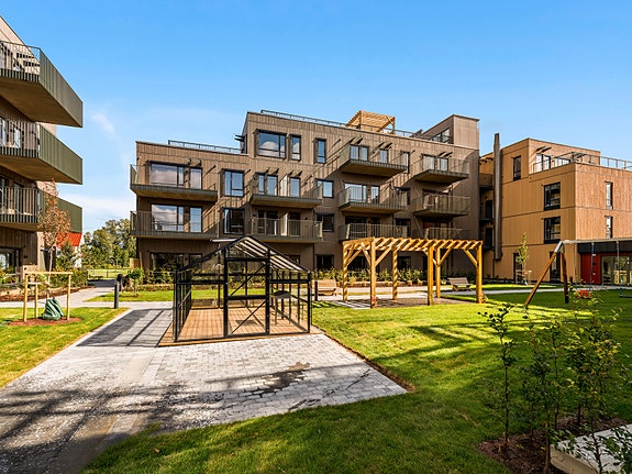 I tunet mellom byggene vil beboerne ha tilgang til et flott drivhus, samt en egen boccia-bane!