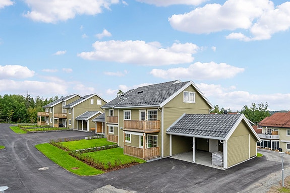 Alle leiligheter får egen utvendig bod og parkeringsplass i