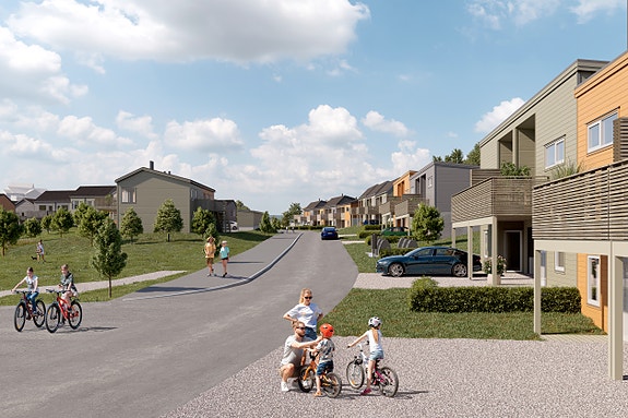 Rundt 170 ulike hjem skal bli til et varmt, velfungerende fellesskap hvor alle kan finne lykken. Det blir plass til barnelatter, grilling, gode samtaler og en rolig stund på uteplassen med en god bok i hånden.
