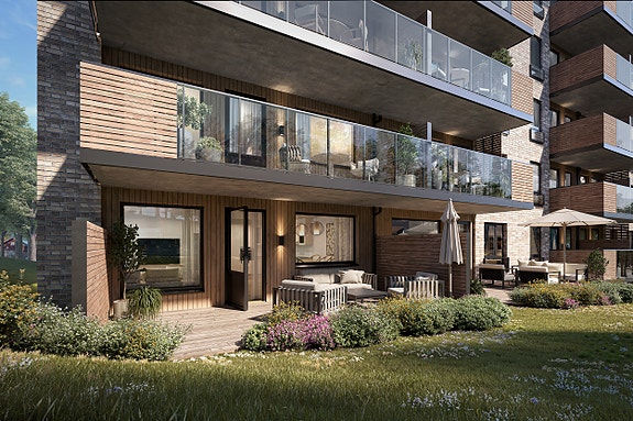 Langhus Gård - Tunet 2-4. Nye, lekre leiligheter for salg, like ved togstasjonen. Gode solforhold!