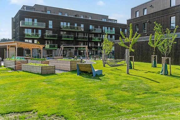 Bygg 2 inneholder 28 lekre og moderne leiligheter med vestvendte uteplasser.