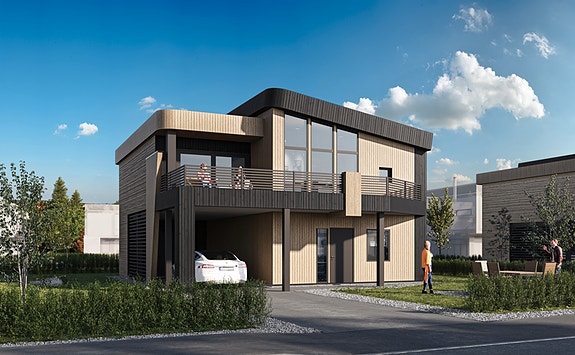 Boligene leveres med integrert carport. Det er også tilstrekkelig plass til parkering i egen innkjørsel.