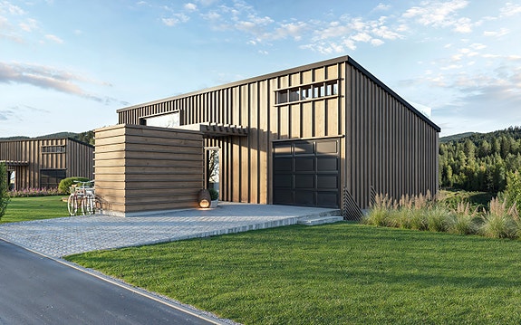 Illustrasjon adkomst - boligen leveres med garasje og utebod som vist i illustrasjon