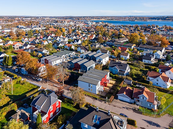 Lekre og lettstelte townhouse med vannbåren varme, innendørs parkering og eksklusive kjøkken.