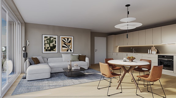 De fleste leiligheter vil få nydelig utsikt og romslige balkonger eller takterrasser. I tillegg opparbeides det flotte fellesarealer og bilen kan parkeres i prosjektets underetasje.