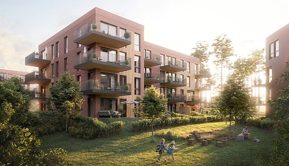Vi gleder oss over at Plussboliger® nå kommer til Snøbyen! De første leilighetene som kommer for salg har balkong eller terrasse mot vest, og utsikt til en skogkledd kolle midt i gårdstunet.