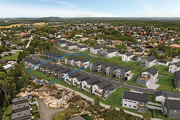 Vi bygger 24 moderne eneboliger i kjede, med to unike planløsninger som passer enhver livsstil. Velg mellom en bolig med inngang i første etasje eller en med inngang i underetasjen. Vi har nå lansert 7 nye enheter for salg, hus 17-21 og 22-28.