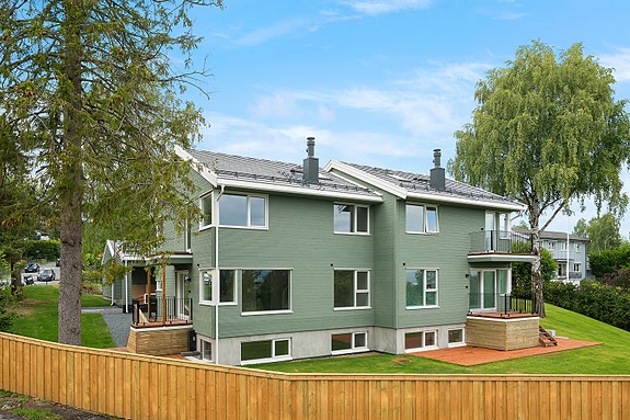 Eiendommene ligger skjermet til, med svært gode solforhold og en flott utsikt mot fjorden og Oslo by. Boligene føres opp i henhold til TEK-17 og vil holde gjennomgående høy standard - både innvendig og utvendig. Kjøkken leveres fra Sigdal (modell Uno eller tilsvarende), det legges 1-stavs eikeparkett, og det installeres balansert ventilasjon for et godt innemiljø. Alle materialer er nøye valgt for å harmonere med boligenes arkitektur og uttrykk.