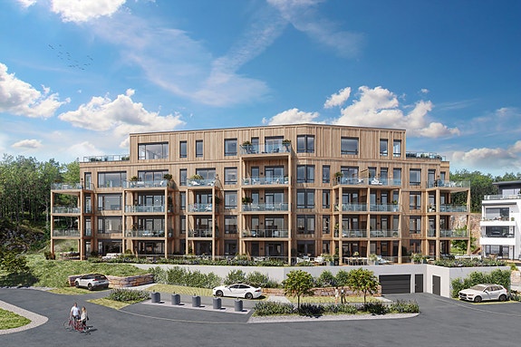 Bo sentralt - men tilbaketrukket. Det er mange leiligheter med stor variasjon i både størrelse og utforming å velge blant. Alle leilighetene er fylt med flotte kvaliteter som du vil nyte godt av i det daglige. Her får du frodig og behagelig utsikt - med skog og turstier like utenfor døren.