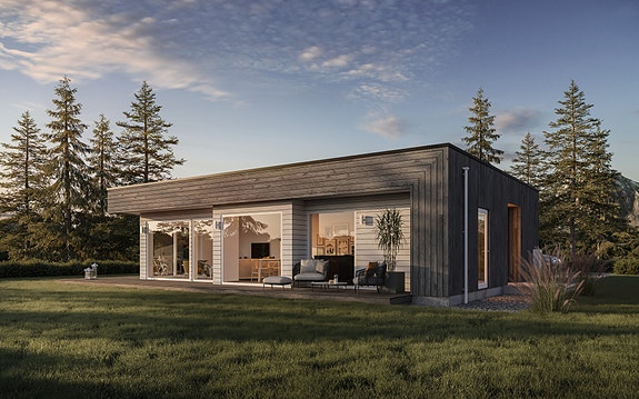 Utvendig leveres boligen ferdig med kledning "Nord" fra Bergene holm.