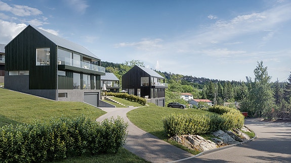 Velkommen til prosjektet Fjordsikt, 8 flotte eneboliger (3 solgt) med garasje i Holmenkollåsen. Nærhet til skole, barnehage og offentlig kommunikasjon. Dobbel garasje i u.etg på alle husene. Det nærmer seg overtagelse.