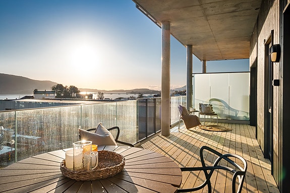 Ta heisen opp til taket og nyt fantastisk utsikt og sol fra morgen til kveld fra private og felles takterrasser. Felles takterrassen er på over 250 m2 hvor det blir felles sittesoner og utekjøkken.