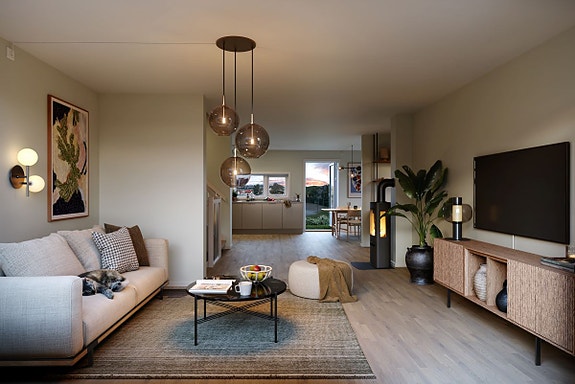 Velkommen til Kvileitet 77-93 - Gjennomgående stue/kjøkken gir god romvirkning og praktisk kontakt med uteområder.