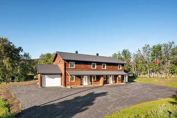 Hver halvpart går over to plan og inneholder bl.a. tre soverom, to bad, vaskerom, åpen stue-/kjøkken-løsning, walk-in- garderobe og bod/teknisk rom. Boligen ligger i et barnevennlig område, med kort vei til skole, barnehage, dagligvarebutikker, treningssenter og idrettsanlegg.