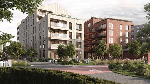 De 168 leilighetene i Timbre ligger perfekt til der Lillestrøms sjarmerende trehusbebyggelse møter den nye, mer urbane byen.