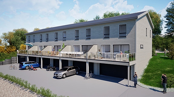 5 eneboliger i rekke. (visualisering)