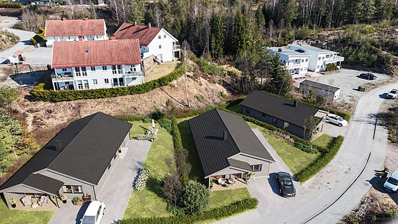 I Natveitåsen prosjekteres nå 3 eneboliger på hver sin romslige tomt. Husene er tegnet med alle rom på en flate.
