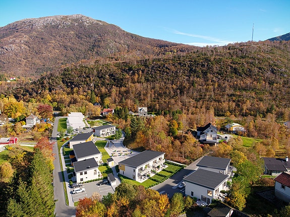Dette nybyggprosjektet ligger i det vakre området Espeland i Bergen, omgitt av frodig natur og fredelige omgivelser. Her bor du midt i et landskap preget av skog og fjell, med flotte turmuligheter rett utenfor døren.