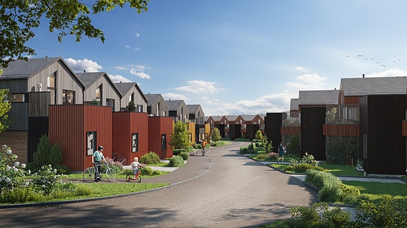I dette nye nabolaget får du den unike balansen mellom det naturskjønne og det bekvemmelige, med fuglekvitter og grønne omgivelser, kombinert med alle servicefunksjoner lett tilgjengelig.