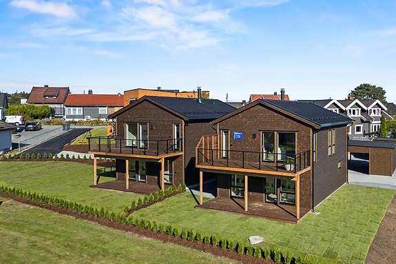 To nyoppførte eneboliger beliggende på solrik tomt på Bjørnstad. En er solgt.