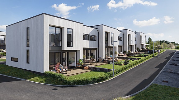 Størrelser og typer varierer, og vi tror og håper mange vil finne noe de liker. Felles er at RAMP Arkitekter har tegnet hjem som er fine å se på og gode å bo i. Totalt vil utbyggingen telle 40 leiligheter, 29 rekkehus, 10 vertikaldelte boliger og 2 eneboliger.