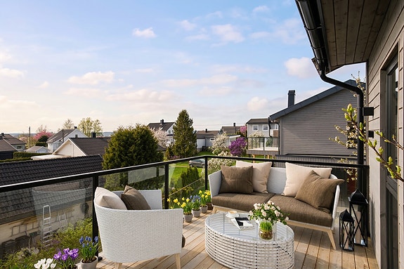 Terrasser på bakkeplan utføres i betongheller eller tremmegulv, ut ifra hva som er hensiktsmessig.