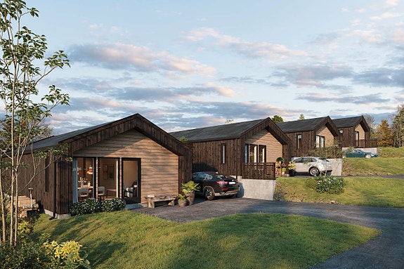 Velkommen til Øvre Vollaveien, 4 flotte rekkehus under bygging. Illustrasjon - avvik kan forekomme.