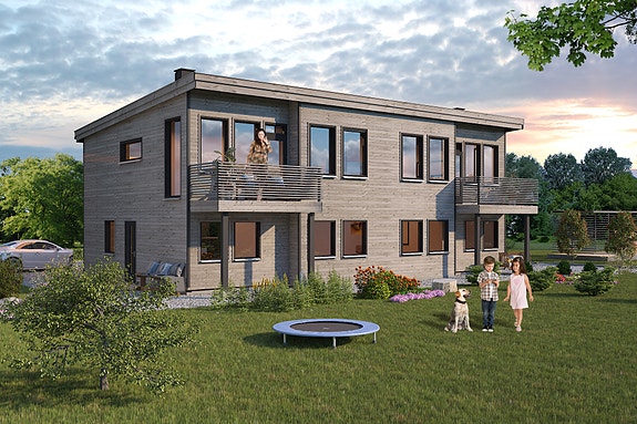 Boligene selges som ferdige prosjekterte boliger. Dette er romslige tomannsboliger, hver halvpart er på ca 121 kvm BRA.