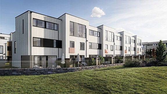 Åtte rekkehus i første rekke