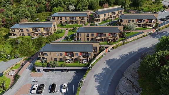 Prosjektet får en tilbaketrukket, men samtidig meget sentral beliggenhet. God solforhold og flott utsikt.